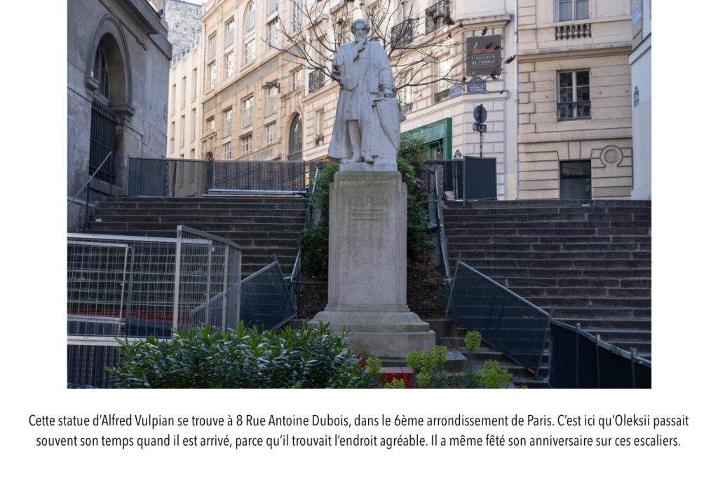 J’ai rencontré Oleksii au début de ma première année universitaire en septembre 2025. À ce moment-là il était très occupé en essayant de mettre en place son propre café “u.graine” au 6ème arrondissement de Paris. Oleksii est arrivé d’Ukraine ici en 2020 pour ses études. Il a découvert et a parcouru des lieux variés dans toute la ville. Cette série photographique vise à présenter quelques-uns de ces lieux qui lui sont devenus personnels suite à sa migration de Kyiv, Ukraine à Paris, France.